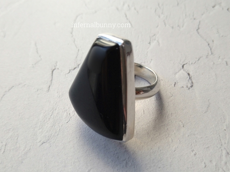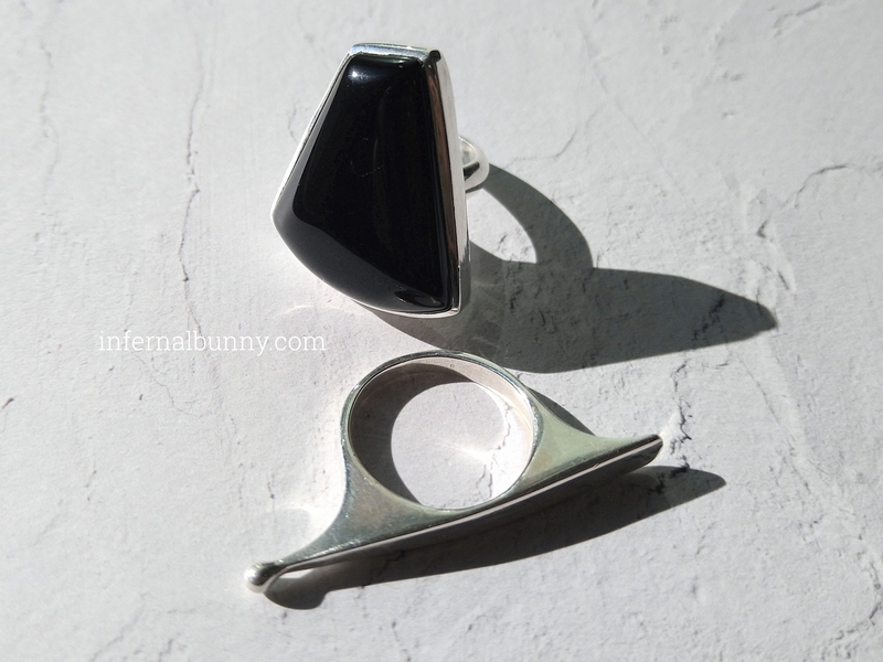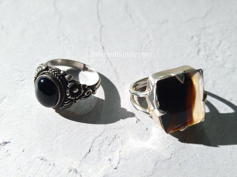 黒い石の指輪は、ストーンマーケットのブラックオニキスとビジュマムのモンタナアゲートをすでに持っている(モンタナアゲートは正確には茶色の石だが個体差が大きく、わたしが持っているものはほぼ黒に近い焦げ茶色)。