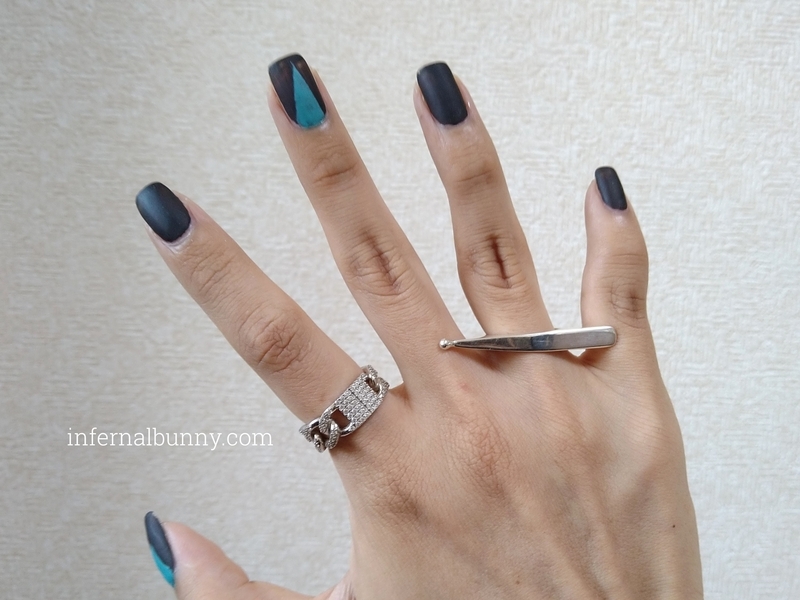 ダブルフィンガーリングってこんなやつね。指2本につけるので普通の指輪よりも振り切った横長のモチーフをつけることが可能で、デザインの幅が広がる。