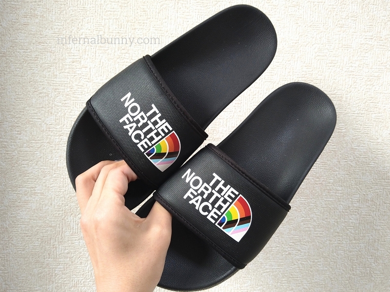 ザノースフェイス(THE NORTH FACE)のWOMEN′S BASE CAMP SLIDES Ⅲ PRIDEという商品です。日本未発売の、LGBTQプライドコレクション商品です。有名ブランドでもプライドコレクションは日本には入荷しないことがよくある。悲しい。