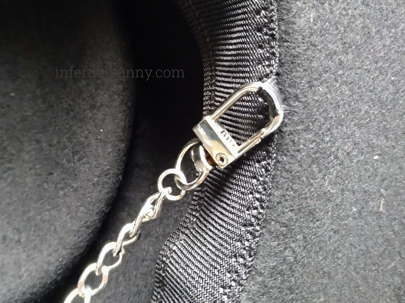 高さが低く小さめのツバがポイントのロイヤルな印象のデザインハット。2種類のチェーンがアクセントになっています。