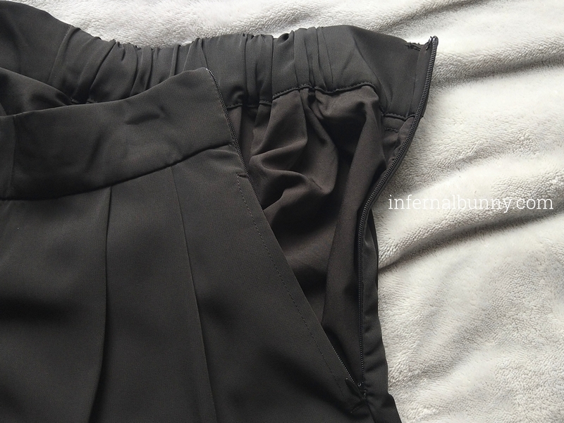 ウエスト68.5センチ、股上33センチ、股下64センチ、裾幅34センチ