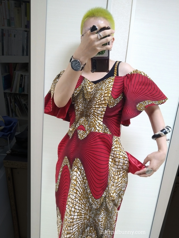 わたしは日常生活でポケットを多用するので、服を選ぶときもポケットのないボトムス・アウター・ワンピースは買わない主義です。しかし最近アフリカンバティック*1がマイブームなので、妥協して買ってしまいました。ですがポケットがないとやはり不便なため、今からお直し屋さんでサイドポケットをつけることにしました。